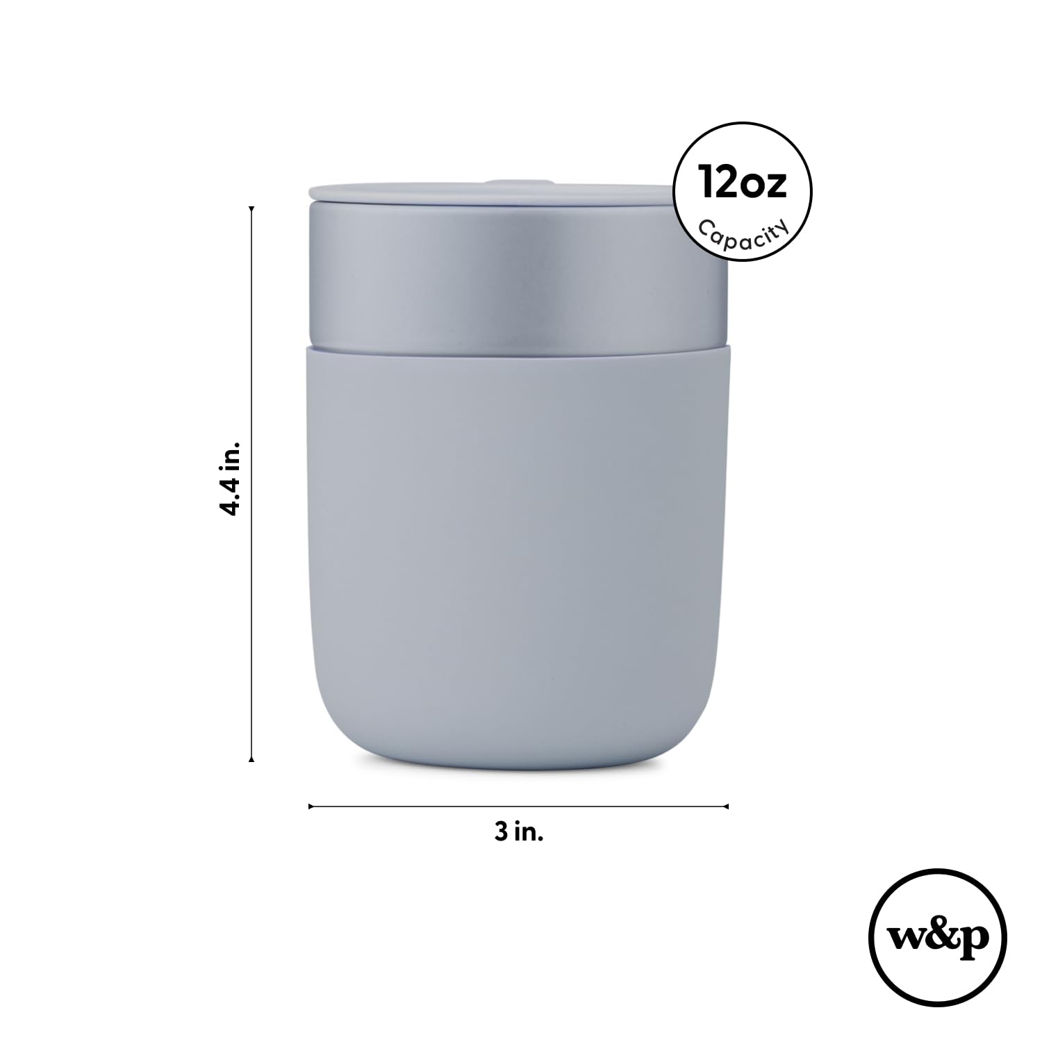 W&P Porter Ceramic Mug w/ Protective Silicone Sleeve, Cream 12 Ounces | On-the-Go | No Seal Tight | Reusable Cup for Coffee or Tea | Portable | Dishwasher Safe (WP-PMC-CM)